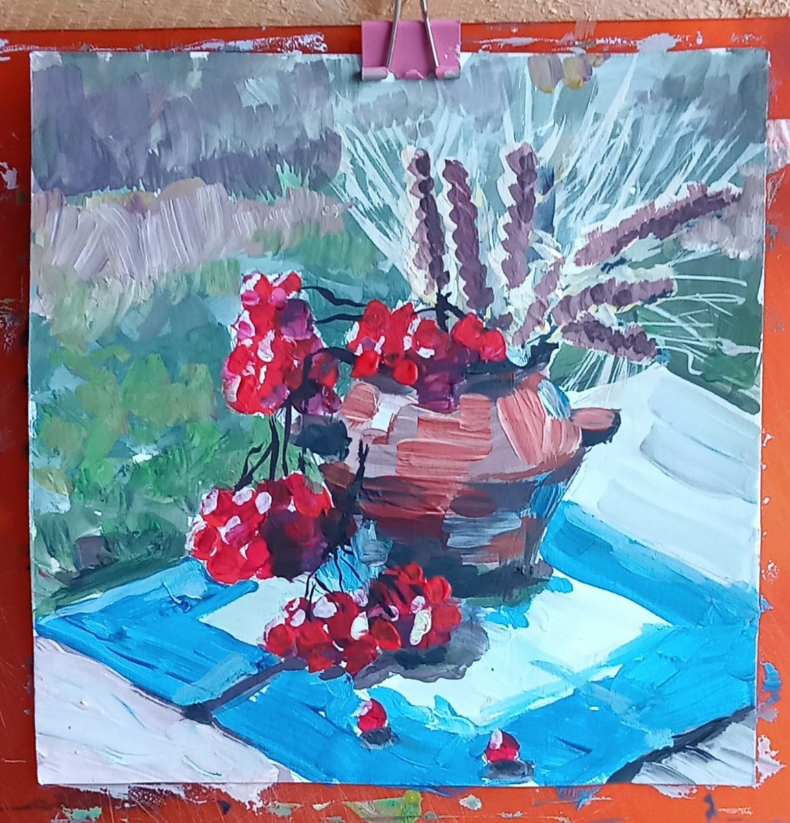 Калиново-ржаной этюд🌾🌾🌾 Картон, гуашь #осень #калина #этюд