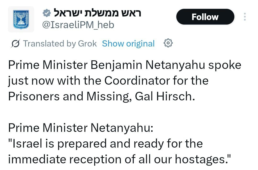 Netanyahu READY to get all hostages back Israel has been moving Palestinian prisoners in preparation for exchange Families of hostages have been sent message: release to start Monday morning