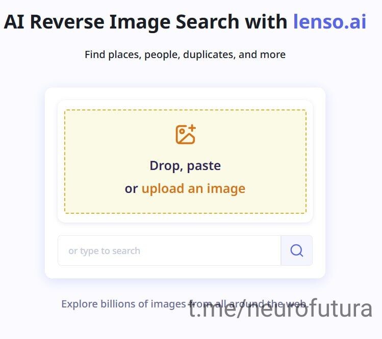 Нейросеть, которая поможет найти место где сделано фото Lenso.ai — это платформа, специализирующаяся на поиске изображений с помощью технологии обратного поиска (Reverse Image Search). Она использует продвинутые AI-модели для поиска по категориям. Загружаете фото и выбираете что вам надо - поиск места, дубликата фото или поиск человека. Наш телеграмм канал t.me/neurofutura