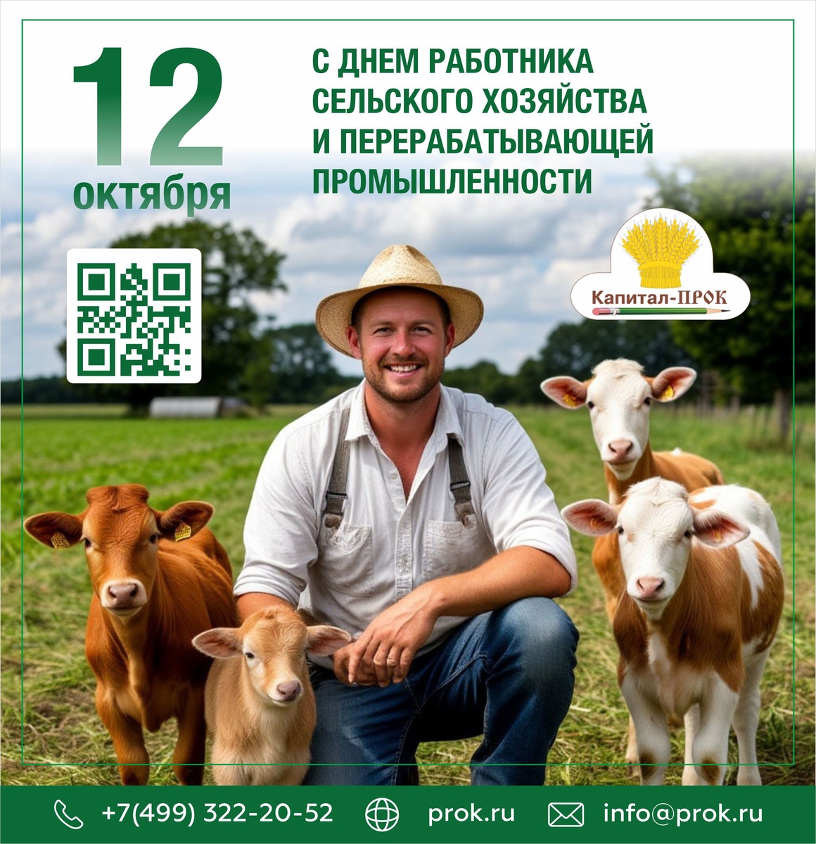 Уважаемые коллеги, партнеры, труженики и ветераны агропромышленного комплекса! Коллектив компании АО "Капитал-ПРОК" поздравляет вас с профессиональным праздником — Днем работника сельского хозяйства и перерабатывающей промышленности! Этот день — прекрасный повод выразить глубокое уважение и признательность всем, кто связал свою судьбу с родной землей, кто от зари до зари, не покладая рук, трудится для обеспечения продовольственной безопасности и благополучия нашей страны. Ваш созидательный и самоотверженный труд, преданность избранному делу и любовь к родной земле заслуживают самого высокого признания. Агропромышленный комплекс по праву является одной из ключевых отраслей экономики России, а ваш вклад в ее развитие — неоценим. В этот праздничный день примите самые искренние пожелания крепкого здоровья, неиссякаемой энергии, финансовой стабильности и новых трудовых свершений! Рекордных надоев, роста поголовья на фермах и высоких урожаев! Пусть вам всегда сопутствует благоприятная по