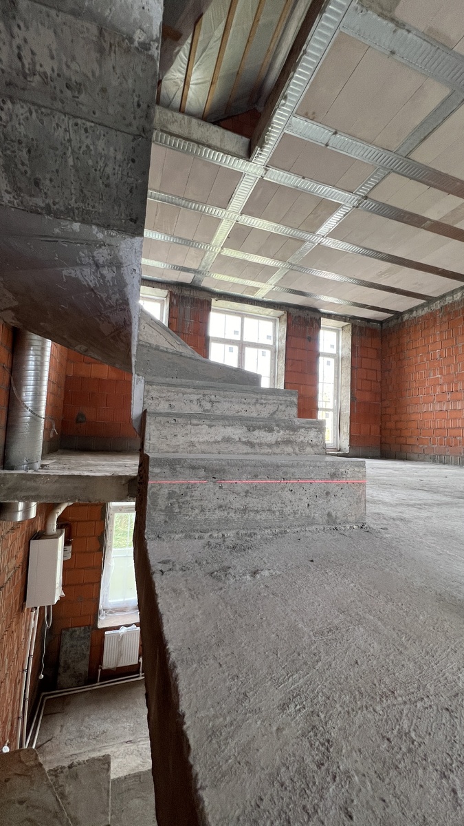 В большинстве случаев счастливый обладатель ключей от объекта получает такую вот времянку, и все. На данном объекте мы будем заливать монолитную лестницу и потом обшиваем ее деревом.