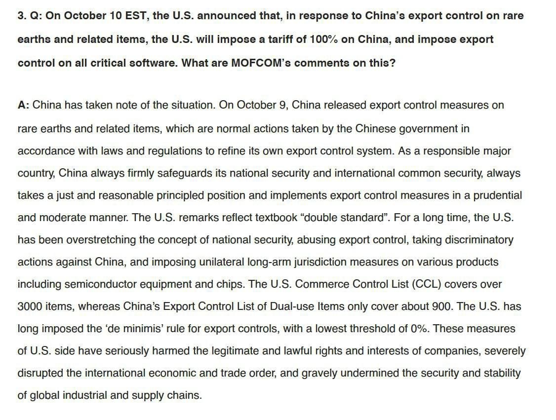 Министерство торговли КНР заявило, что Китай ответит в случае, если Трамп введет 100% пошлины В официальном заявлении, говорится о том что Китай осуждает решение Америки, считая его отражением "двойных стандартов". "Угрозы введения высоких пошлин на каждом шагу – неправильный способ взаимодействия с Китаем. Если США продолжат следовать своим курсом, мы решительно примем соответствующие меры для защиты своих законных прав и интересов", - заявили в министерстве торговли КНР. Кроме того, в заявлении министерства говорится, что после переговоров в Мадриде (где было заключено «торговое перемирие» между двумя странами) США "постоянно вводили новые ограничения против Китая", включая внесение в черный список китайских компаний. "США долгое время расширяли понятие национальной безопасности, злоупотребляли экспортным контролем, принимали дискриминационные меры против Китая и вводили односторонние меры юрисдикции «длинной руки» в отношении различных товаров, включая полупроводниковое оборудо