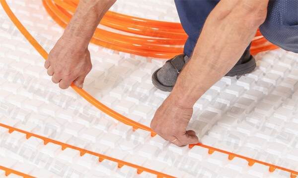 Монтаж нагревательного водяного змеевика тёплого пола предусматривает прямую укладку трубы на плиты профильной теплоизоляции. При этом нет необходимости применять какие-то специальные инструменты.