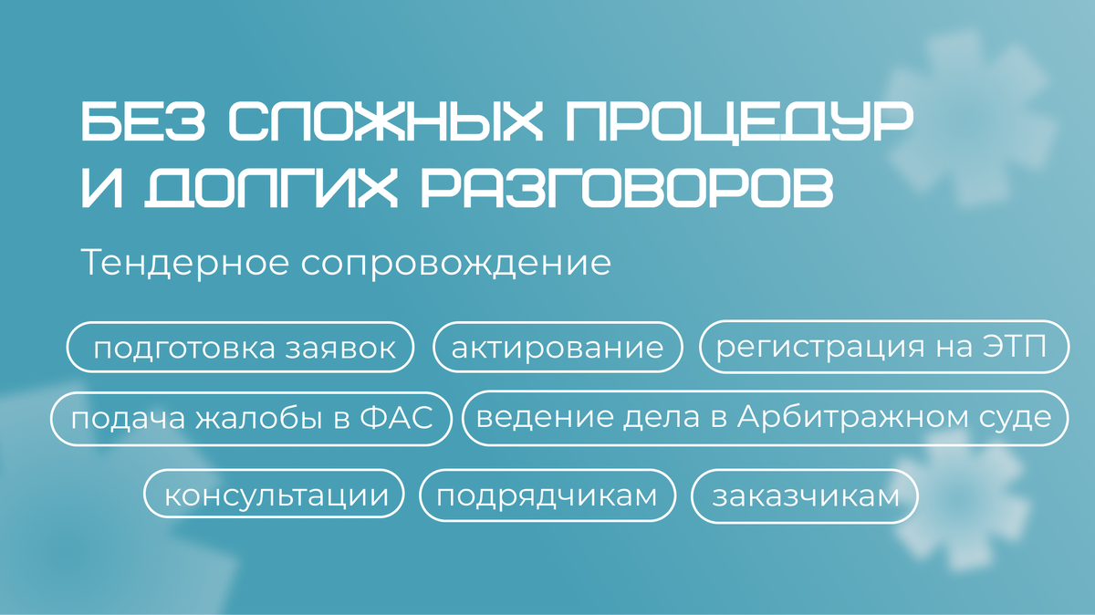 ✓ не упускаете возможности — подберем и подадим заявку даже «на завтра». Услуги для подрядчиков: