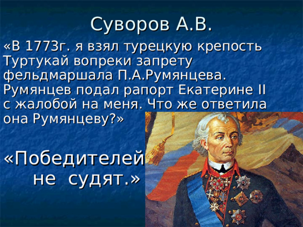 «Слава Богу, слава вам, Туртукай взят, и я там», — писал Суворов Румянцеву.
