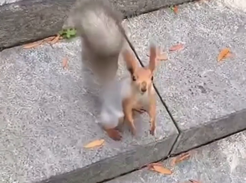 Пушистый вымогатель орехов попал на видео в парке Галицкого