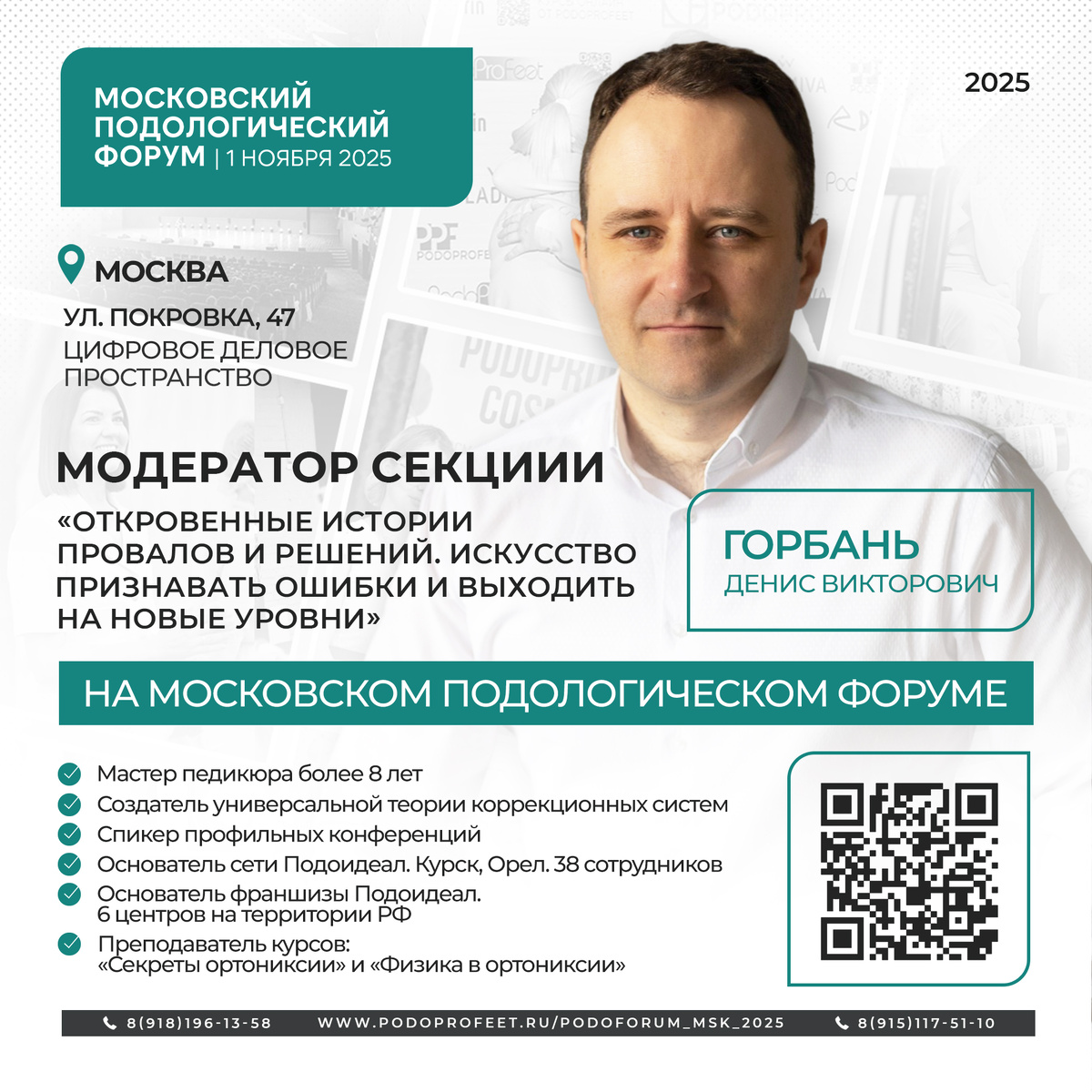 Ошибки — это то, через что проходит каждый руководитель. Даже самые опытные не застрахованы от просчётов: неудачный найм, уход сильного мастера, провалившийся проект, неэффективная система мотивации. Но именно такие моменты чаще всего становятся поворотными — они учат не паниковать, выстраивать систему и двигаться дальше. На Московском подологическом форуме 1 ноября 2025 года эта тема прозвучит по-новому: без глянца и пафоса. Реальные истории, честные признания и выводы, за которыми стоит опыт и рост. Ошибки, которые делают всех сильнее Наш сегодняшний собеседник — Денис Горбань, основатель франшизы Подоидеал с 6 центрами на территории РФ. Преподаватель курса «секреты ортониксии» и «физика в ортониксии». Мастер педикюра со стажем более 8 лет и создатель универсальной теории корректирующих систем. Он делится простыми, но ценными наблюдениями: «Первый раз, когда уволился мой сильнейший мастер — человек, в которого я вложил два года работы, — я “залипал” в этом три месяца. Только мысли: