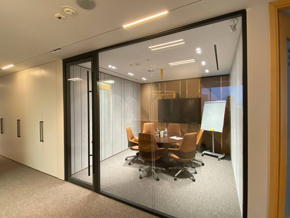 Проект компании RISHE по монтажу стационарных Цельностеклянных (ЦС) перегородок со звукоизоляцией RISHE-Twin и звуконепроницаемых дверей TWIN3 72-93 в офисе компании Family Garden (Фэмили Групп, Сеть ресторанов Pro.Хинкали и др.). Стекла, по задумке дизайнера, выполнены из ультра-осветленного стекла AGC Crystalvision (кристалвижн). Офис компании Family Garden находится в Бизнес Центре CITIDEL. Самый удобный вариант функционального зонирования пространства офиса – установить стационарные офисные перегородки. Family Garden заказали звукоизоляционные стационарные перегородки RISHE-Twin, выполненные из тонкого 75 мм профиля со стеклянным заполнением секций. Для прохода между зонами в переговорных использованы звуконепроницаемые двери TWIN3 72-93, имеющие узкий профиль 72 мм, который обеспечивает визуальное единообразие перегородок и дверей. Family Garden: ресторанный холдинг с южным темпераментом. Family Garden — крупнейший ресторанный холдинг юга России и стран СНГ. За 10 лет на рынке ком