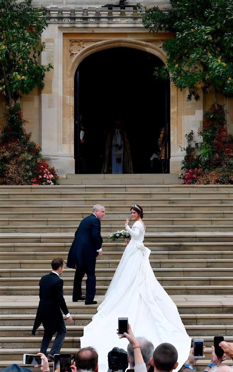 Часовня Святого Георгия (та самая, где полугодом ранее женился Гарри), 850 гостей, бабушка-королева в своем фирменном невозмутимом виде, и невеста в тиаре от Boucheron 1919 года.