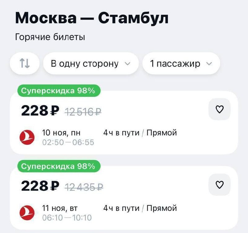 ⚡️⚡️⚡️Перелет в Стамбул за чашку кофе: цены рухнули в 50 раз! ✈️ Авиаперевозчики резко снизили цены на перелеты из Москвы в Стамбул на ноябрь. 💰 Стоимость билетов упала до 228 рублей, что в 50 раз меньше предыдущих цен. 🛒 Такую возможность стоит использовать немедленно, пока предложение действует. #Стамбул #авиабилеты #горящиепутевки @takeyourbackpack