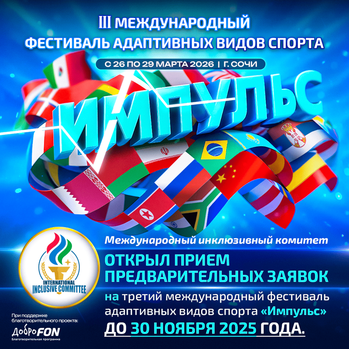 Стартовал приём предварительных заявок на участие в III Международном фестивале адаптивных видов спорта «Импульс». Ожидается, что в нем примут участие более трех тысяч спортсменов с из более чем 20 стран мира. Участие бесплатное для всех, однако, важно успеть подать заявку до 30 ноября. - Виды спорта включаются в программу при условии формирования команд минимум из 5 регионов РФ и минимум 1 зарубежной страны. Количество дисциплин может корректироваться на основе поступивших заявок. Впервые в программу включены воздушные, ледовые и водные дисциплины, - говорят организаторы. Уточняется, что основной задачей мероприятия остаётся популяризация адаптивного спорта и привлечение внимания общества к возможностям и достижениям людей с ограниченными возможностями. «Импульс» напоминает о том, что спорт способен объединять, мотивировать, находить друзей и ломать любые стереотипы. Международный фестиваль адаптивных видов спорта «ИМПУЛЬС» реализуется в рамках реализации «Национальные проекты России»