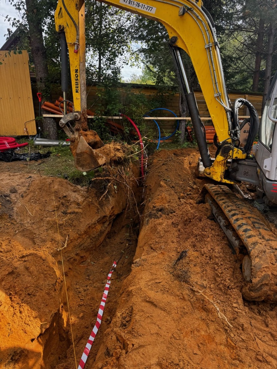 🏗 Продолжаем работы на новом объекте! После укладки геотекстиля перешли к следующему этапу — начинаем выкапывать траншеи и параллельно закладываем трубы под водоснабжение.После чего выравниваем песок на участке и трамбуем его. На фото можно увидеть, как участок постепенно приобретает форму будущего фундамента. Все работы ведутся по проекту и с соблюдением технологических требований. Двигаемся дальше — впереди армирование и подготовка к заливке. Будем держать вас в курсе каждого этапа!