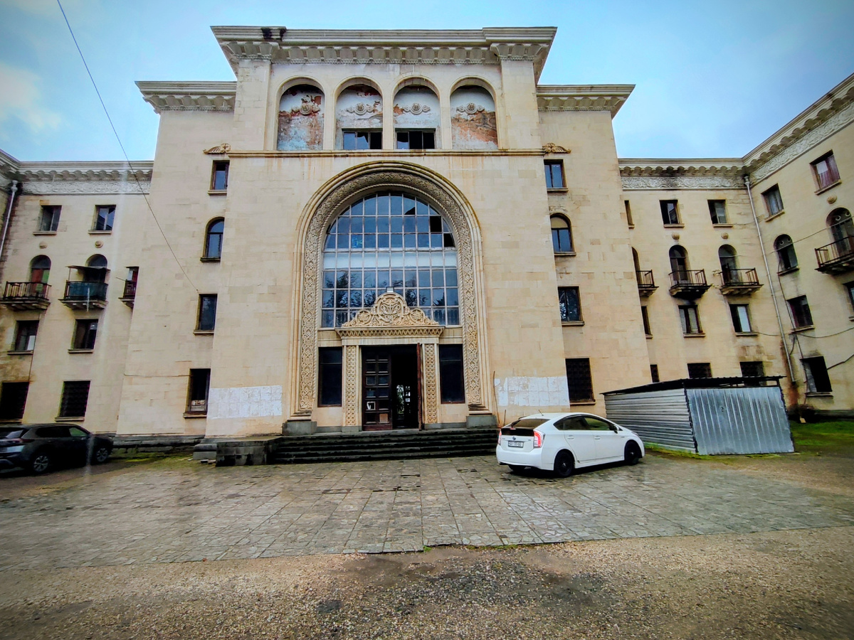 Цхалтубо – один из самых знаменитых курортов Советского Союза был. Приезжали на лечение трудящиеся со всех концов большой страны. Из Москвы специально в Цхалтубо поезда ходили. Больше 20 огромных санаториев понастроили. И вот все опустило. Кому нужна всесоюзная здравница, когда Союза нет. Санатории – дворцы в руины превращаются. Санаторий Металлург снаружи вроде как ничего выглядит. Пара иномарок у входа стоит. Но приглядевшись, выбитые окна видишь. Понимаешь. Давно утрачен лоск позднего сталинского ампира. Который на открытки просился. Строили раньше с размахом. Входной холл нынешним пятизвездочным отелям фору даст. Даже в заброшенном состоянии. Двери распахнутые как будто в парк приглашают. Вышли. Осмотрелись. Но по заросшему парку гулять желания не появилось. Пошли санаторий смотреть. Лифт, естественно, давно не работает. Зато лестница как во дворце. По центру- большие круглые залы на каждом этаже. Иногда в два уровня. С огромной люстрой. А тут почему-то заглушку поставили. В корид