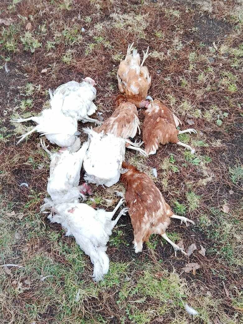 У всех кур раны на шее, тушки целые, сообщает также хозяин.