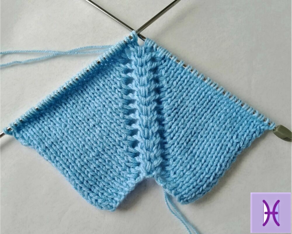 Если у вас в планах связать для себя любимой или в подарок подруге красивый свитер или пуловер, то предлагаю рассмотреть вариант вязания от горловины. А для линии реглана предлагаю очень симпатичную ажурную линию. Замечательно смотрится если вы вяжете изделие лицевой гладью. Описание вязания: Линия реглана вывязывается на четырех петлях. В вязании используются накиды и перекрещенные петли, но это совсем не усложняет вязание. Линия реглана вывязывается легко и быстро. Вариант 1-й: при вязании поворотными рядами При вязании изделия отметить маркерами 4 петли. 1-й ряд: вязать лицевыми петлями до последних 2-х петель перед 1 маркером, перекрестить 2 лицевые петли с наклоном вправо (сначала провязать 2-ю петлю за переднюю стенку, а затем провязать 1-ю петлю за переднюю стенку), накид, перекрестить ещё 2 лицевые петли с наклоном вправо (сначала провязать 2-ю петлю за переднюю стенку, а затем провязать 1-ю петлю за переднюю стенку), перекрестить 2 лицевые петли с наклоном влево ( сначала про