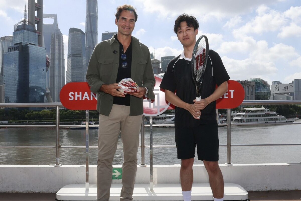🎾 «С легендой». Гонщик «Феррари» Гуаньюй Чжоу сыграл с Роджером Федерером в Шанхае