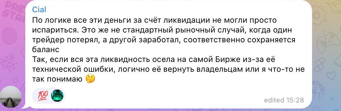 Куда делись деньги после ликвидаций на Binance? После обвала 11 октября логичный вопрос висит в воздухе: Если это была ошибка системы, а не рынок — куда делись все эти деньги? Они ведь не могли просто испариться. На первый взгляд кажется просто: ликвидировались позиции, баланс должен сохраниться — кто-то потерял, кто-то заработал. Если всё произошло из-за бага, то логично вернуть средства владельцам, верно? Не совсем. Когда Binance ликвидирует позиции, она не кладёт эти деньги себе в карман. Система просто мгновенно продаёт активы на реальном рынке. Покупателями становятся контрагенты, маркет-мейкеры, другие боты и участники, которые стояли с ордерами в стакане. То есть деньги сразу уходят “в поле”, а не остаются на балансе биржи. Результат — баланс рынка сохраняется, но не внутри Binance. Ошибка лишь вызвала цепную реакцию реальных сделок по неверным ценам. Исправить это “одной кнопкой” уже нельзя. Биржа может компенсировать убытки только из своих резервов, если официально приз