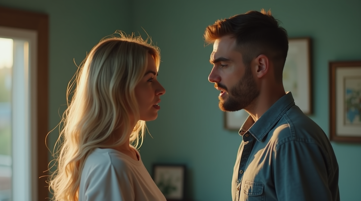 Утренний свет лился через окно, отражаясь на белых плитках столешницы, но атмосфера в комнате была далека от уюта. Вика скрестила руки на груди, её карие глаза метали молнии. Игорь, наоборот, выглядел растерянным, его тёмные волосы торчали в разные стороны после беспокойной ночи.