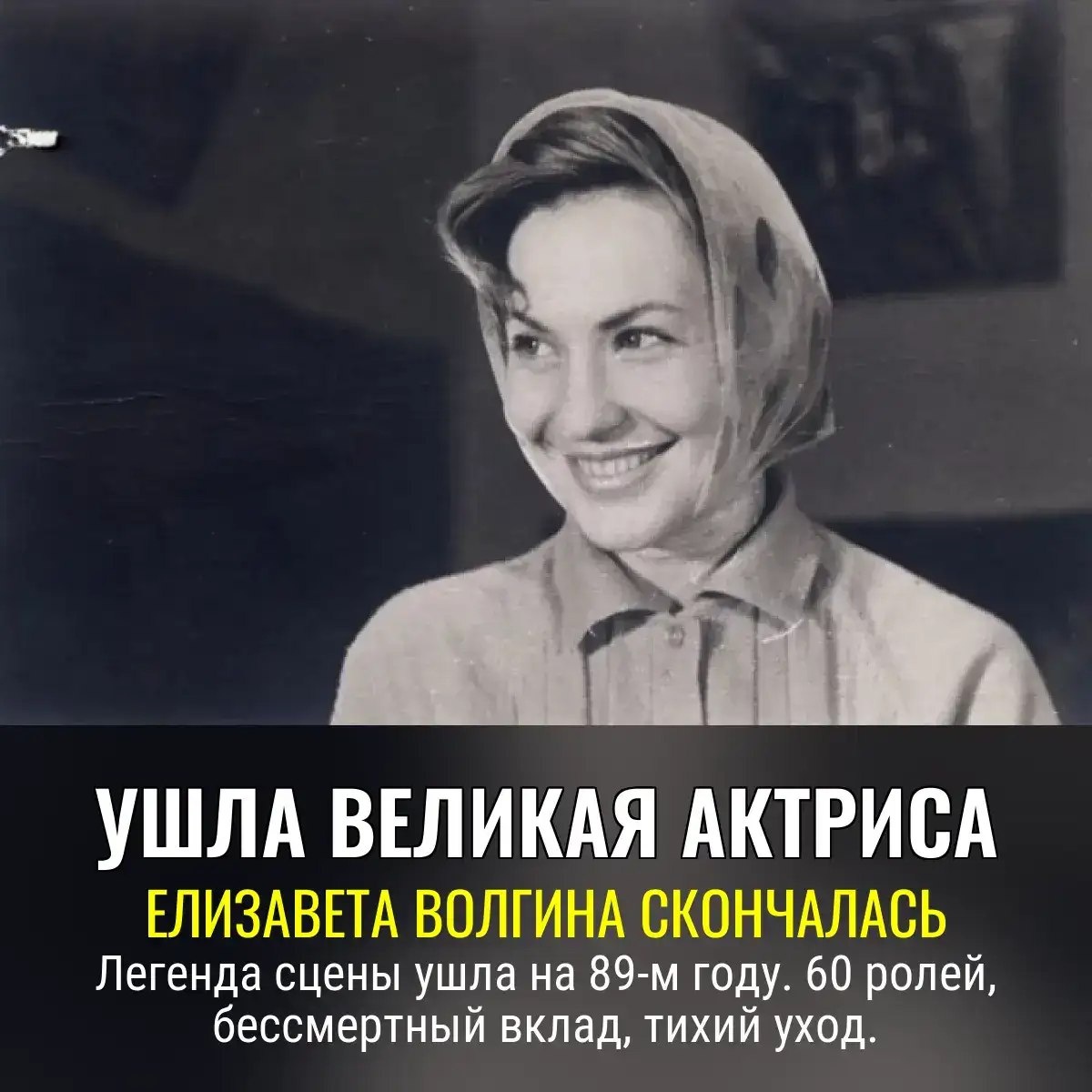 Сцену накрыла тишина 🎭 На 89-м году умерла Елизавета Волгина — актриса, ставшая живым символом Александринского театра. Представьте: с 1961 года Балет в сторону, опера — подождёт, всё внимание на Волгину. За полвека она вырастила целую мышиную клику современных и классических персонажей. Кто ещё впитает пыль театральных кулис в таком объёме? Людмила, Валя, Моника, Варя... эта галерея ролей длиннее списка обещаний министерства культуры. Сцена осиротела, публика тихо офигевает.,