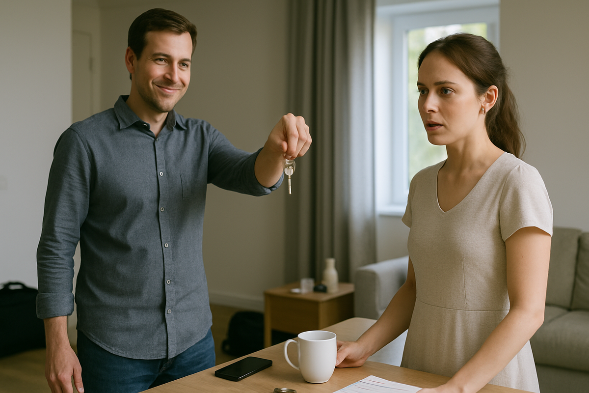 Однажды вечером Артём вернулся домой молчаливее обычного. Лицо каменное, движения резкие. Снял куртку, повесил на крючок. Прошёл в комнату, достал из кармана связку ключей. Вернулся на кухню, где Екатерина мыла посуду после ужина.