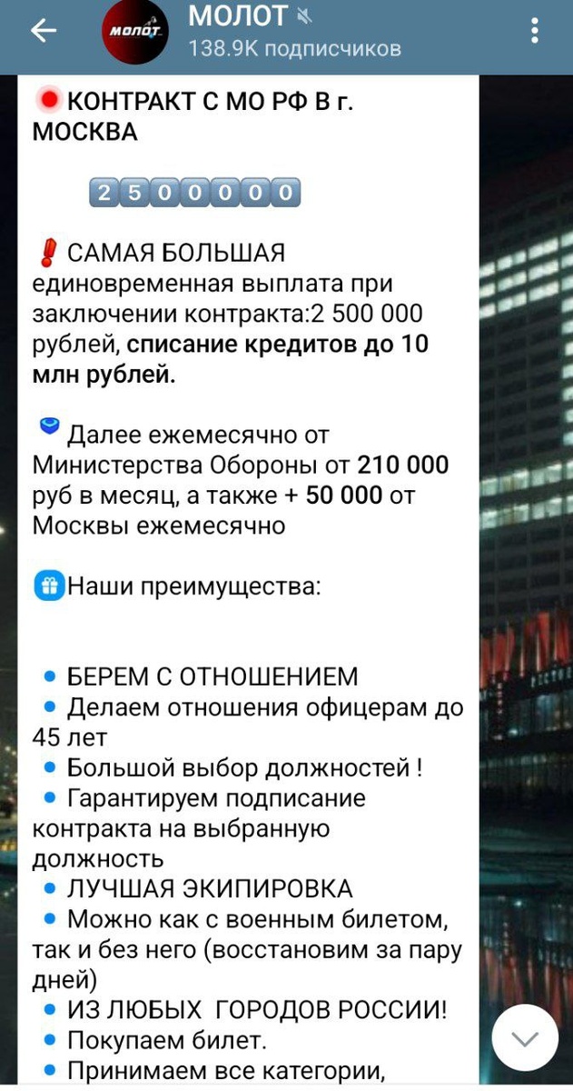 Вражеский канал «Молот» начал продвигать мошенническую схему на контрактах в зоне проведения СВО