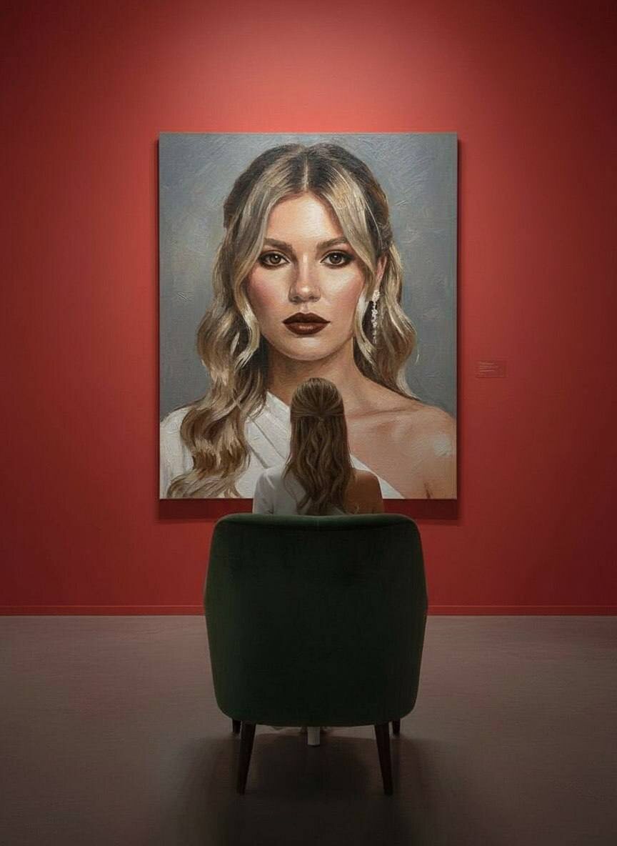 Как создать изображения данного тренда бесплатно? 1. Заходим в телеграмм и вводим в поисковик chatcom Старт/ меню/ что умеет бот/ создать картинку/ Gemini Images 2. Выбираем фотографию и загружаем в чат, добавляя текст↘️↘️ 🔴сделать такое фото, Текст: Создайте сцену в галерее современного искусства, используя прилагаемое изображение лица и внешности девушки, не меняя её черты лица. Оставь все как есть на лице и одежду. На стене висит большой портрет девушки маслом. Её лицо и верхняя часть тела написаны в реалистичной, экспрессивной манере масляной живописи с текстурированными мазками и приглушёнными цветами. Чистая красная стена галереи создаёт профессиональную атмосферу выставки благодаря мягкому освещению, освещающему произведение искусства. Перед картиной в тёмно-зелёном кресле, видом сзади, сидит эта же девушка, что придаёт сцене кинематографическое и таинственное настроение