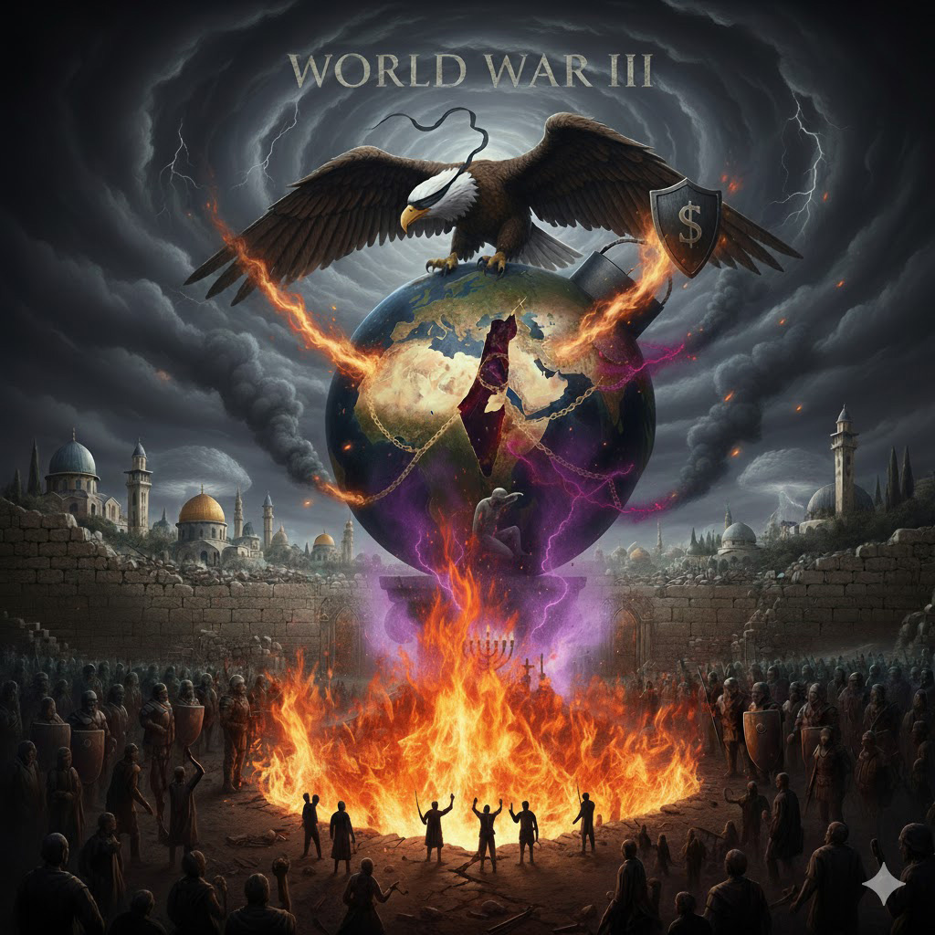 Угроза Третьей Мировой Войны лежит не столько в традиционном геополитическом конфликте, сколько в глобальном распространении идеологической несправедливости, которая институционально закреплена в Израиле и поддерживается Соединенными Штатами.