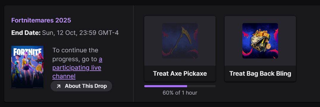 ⚠️Разработчики обнулили награды Fortnitemares 2025 Drops для тех, кто заработал их на Twitch ранее, но так и не получил их в игре