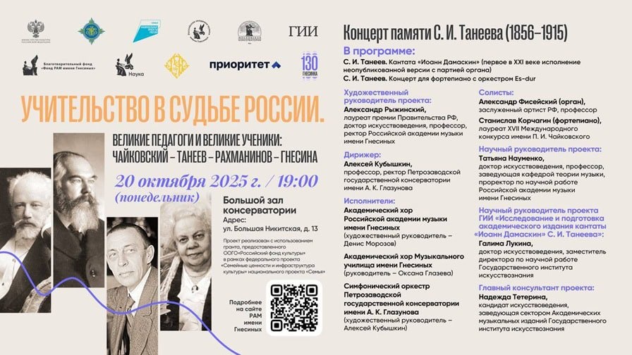 Гнесинка представит новую версию кантаты «Иоанн Дамаскин» Сергея Танеева в Большом зале Московской консерватории