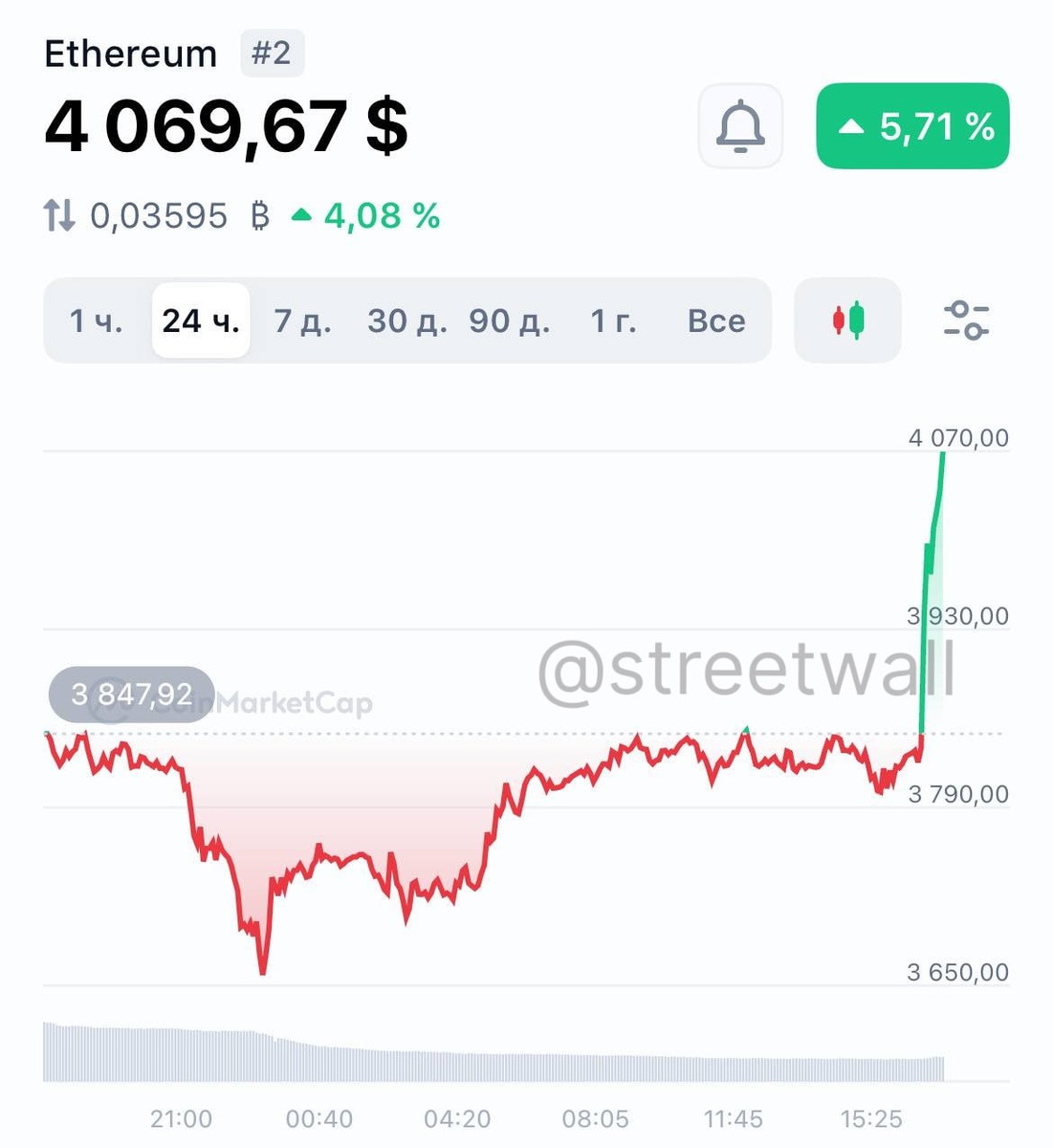 Эфир превысил отметку в $4 000. Криптовалюта Эфир продолжает свой рост, преодолев отметку в $4 000. Интерес инвесторов к этому активу растет, что способствует его повышению. ────────── ⚡️Важные новости – без лишнего шума!⚡️ Подпишись на канал и получай только суть: оперативно, чётко, по делу! 👉 ИнфоСплетник | @infospletnik