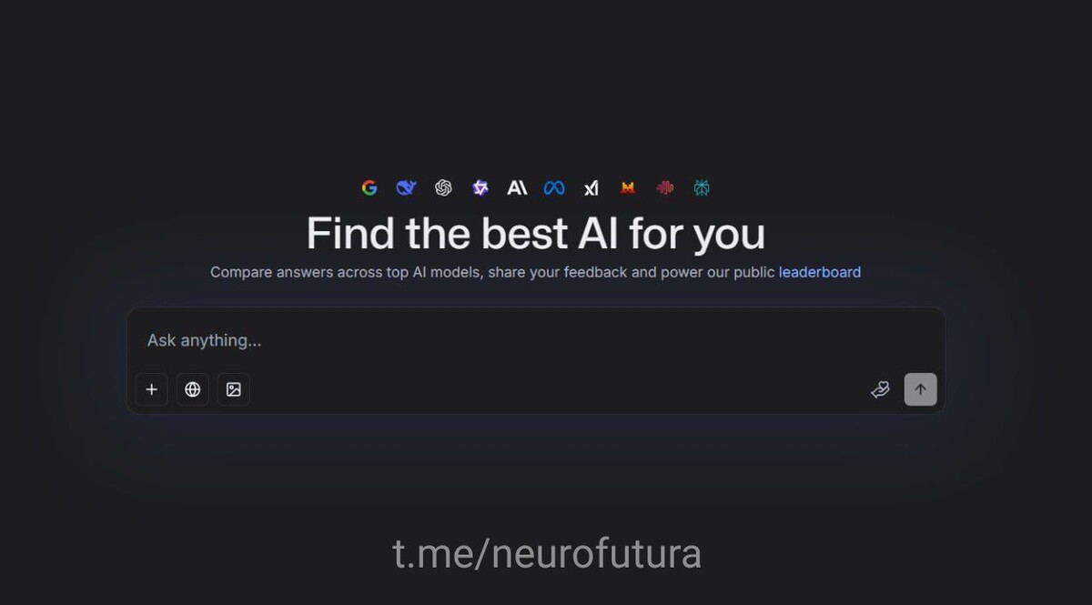 LMArena - предоставляет возможность использовать различные ИИ-модели бесплатно Здесь можно загружать файлы, выполнять поиск и работать с изображениями , т.е все доступные чат нейронки в одном месте и без регистраций, токенов, оплаты Наш телеграмм канал t.me/neurofutura