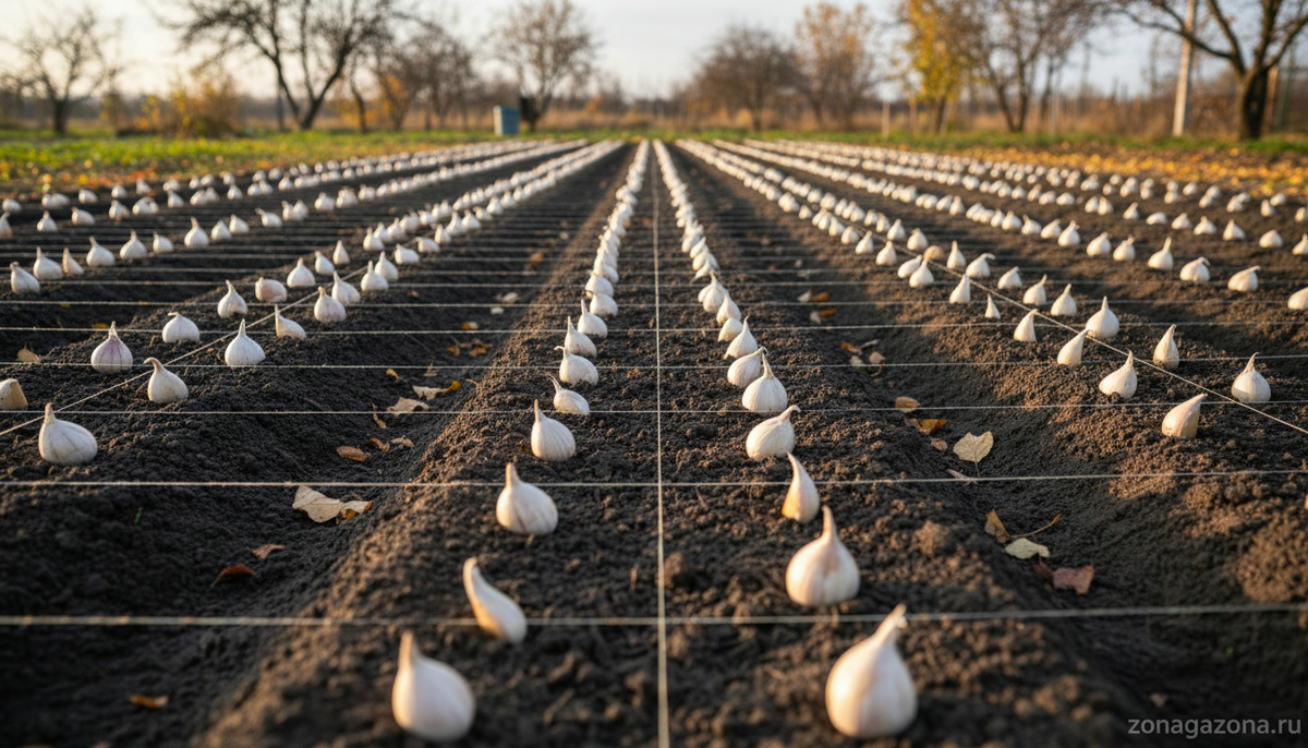 Сроки посадки имеют решающее значение. Слишком ранняя посадка приведёт к тому, что чеснок прорастёт до морозов и погибнет. Поздняя – не даст корням времени укорениться.