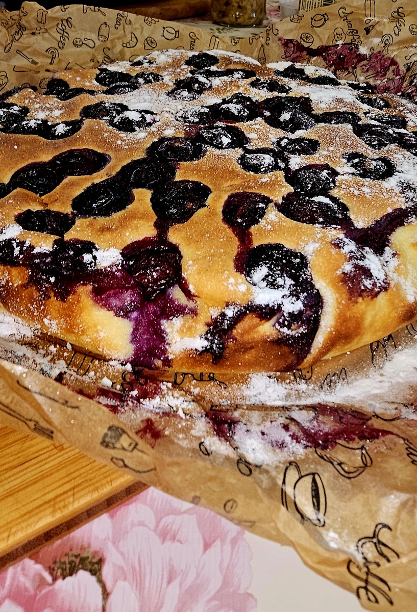 Творожная запеканка с вишней, голубикой и рисовой мукой для завтрака в стиле Хелуин ;)