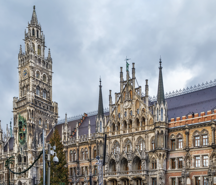 Новая ратуша в Мюнхене — это архитектурная симфония в неоготическом стиле, которая доминирует над главной площадью города. Особенно прекрасна она в октябре, когда золотая листва обрамляет её строгие фасады, создавая неповторимый контраст.