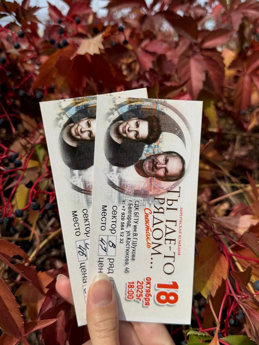 До конца розыгрыша осталось три дня! 🍂 Уже 15 октября «Мир Белогорья» разыграет билеты на лирическую комедию «Ты где-то рядом». Это новый спектакль от продюсерского центра «Фёдор Добронравов». Премьера постановки состоится в Белгороде 18 октября. Мы определим двух победителей, и каждый из них получит по два билета на лирическую комедию. Как стать участником розыгрыша – здесь. Подписаться на нас|Прислать новость|MAX