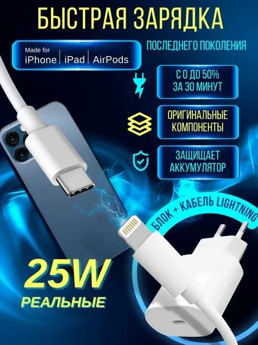 📦 Название продукта: Зарядка для iPhone быстрая 25w Type C Lightning все айфон ETTA High Tech 💰 Цена: 923 ₽💰 ⭐️Рейтинг: 4,9⭐️ 🔗 Ссылка - https://www.wildberries.ru/catalog/137724120/detail.aspx 🔗