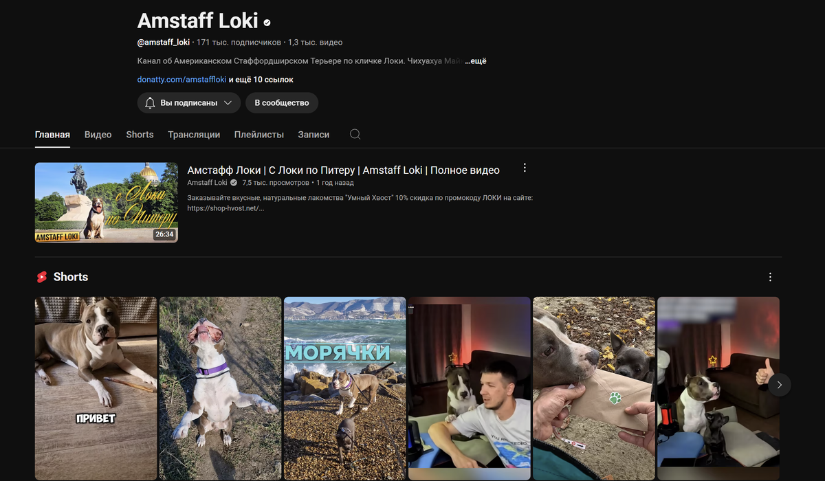 Добрейшего дня, уважаемые мальчики и девочки, мужчины и женщины, сэры и сэрихи, категорически рад приветствовать вас на своем канале👋. Благодарю всех, кто читает и не читает, комментирует и не комментирует мои записи🤝. Два с лишним года я наблюдал на ютубе за ростом, развитием и становлением моего героя. Когда пора ютуба начала заканчиваться, звездный персонаж появился и в ВК, где я с пребольшим удовольствием продолжал смотреть видео, стримы и фотографии. Говорится - "не создай себе кумира" или что-то похожее. Я же, наблюдая, всё-таки всей душой влюбился в него, в американского стаффордширского терьера с именем Локи. Парень этот весьма популярен, на момент написания статьи у него 171 000 подписчиков и настоящая серебряная Ютубо-кнопка из Америки. Ещё в 2023 году у меня были мысли рвануть в Санкт-Петербург, дабы воочию повидать собаку мечты. Затем в 2024-ом Локи с хозяином Алексеем переезжают в город Краснодар. Я тем временем ношу в своей голове идею о переезде в Анапу. На дворе конец