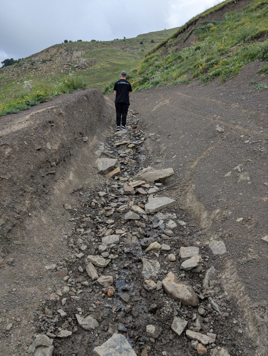 Ну что ж, едем. На смотровой встретился пастух и сказал, что даже на настоящем Танке не проехать ("Нэт, Нэт, Нэт"- говорил он)🤭. До промоины мы доехали( дорога надо сказать была " веселой"). Оставили машину наверху и пошли пешком смотреть что же там стихия наделала. Сама промоина в очень плохом состоянии, широченная, с высокими краями, рельеф полностью изменился). Спустились к броду. Оба рукава завалены огромными камнями, дороги можно сказать нет). Развернулись и поехали обратно. Какая-то печаль накатила, потому что один из самых обсуждаемых и желанных маршрутов закрылся, если не навсегда, то точно надолго.