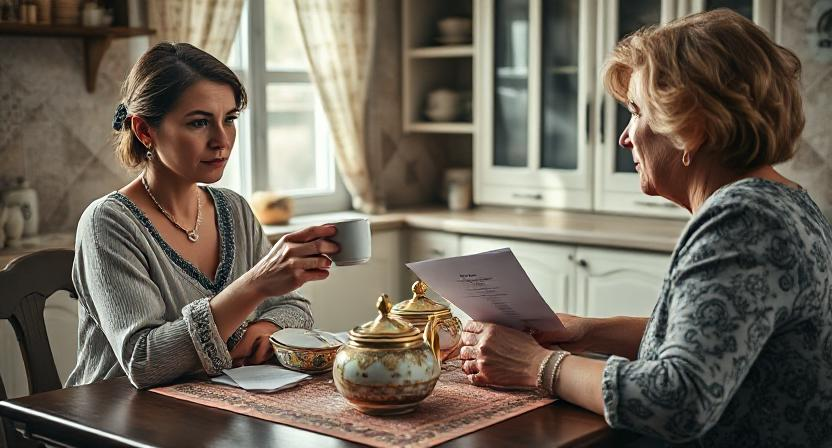 Лицо свекрови мгновенно изменилось. Маска доброжелательности слетела, обнажив холодную, расчётливую суть.