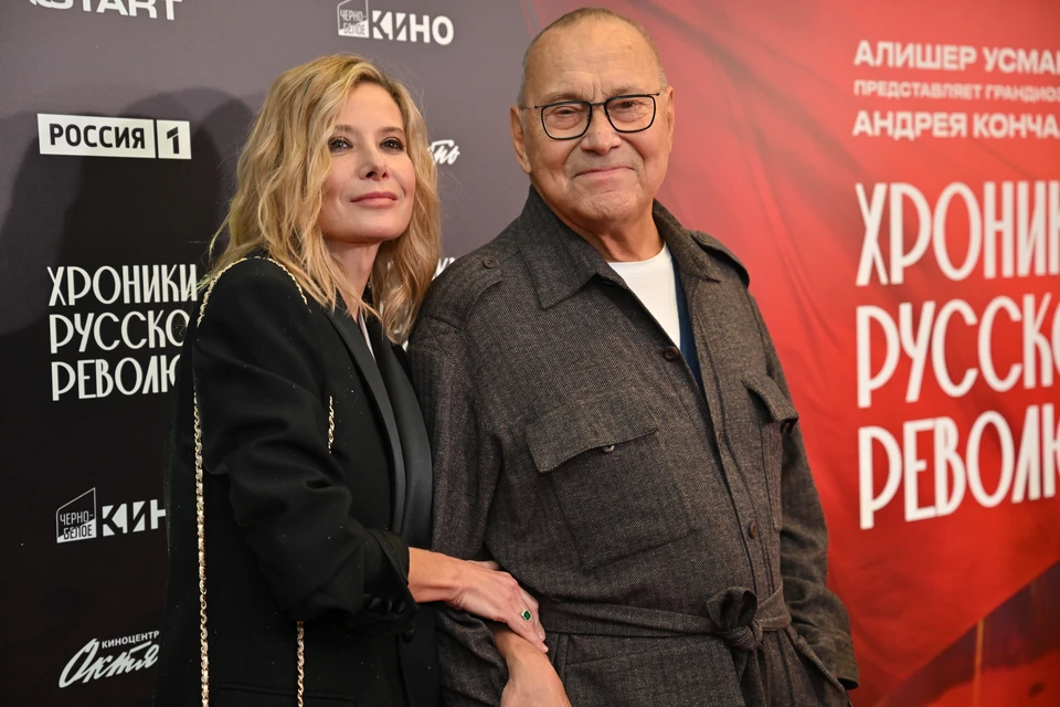 В столичном кинотеатре «Каро Октябрь» состоялась светская премьера масштабного 16-серийного киноромана «Хроники русской революции». С 10 октября проект станет доступен для зрителей на цифровой платформе Start. Автором картины, выступившим одновременно в качестве режиссера и сценариста, стал Андрей Кончаловский. В главных ролях задействованы Юрий Борисов, Юлия Высоцкая, Евгений Ткачук и Никита Ефремов. Андрей Кончаловский прибыл на мероприятие в сопровождении супруги, Юлии Высоцкой. Несмотря на солидный возраст, режиссер продолжает активную творческую деятельность, регулярно появляясь на публике. Один из гостей события отметил: Андрей Сергеевич поражает своей энергией. В свои годы сохранять такую работоспособность и ясность ума – это настоящий пример для подражания. Юлия Высоцкая выбрала для вечера элегантный костюм, состоящий из жакета и миниюбки, который сочетала с классической белой рубашкой. Завершили образ актрисы туфли-лодочки на высоком каблуке, выгодно подчеркнувшие ее стройную