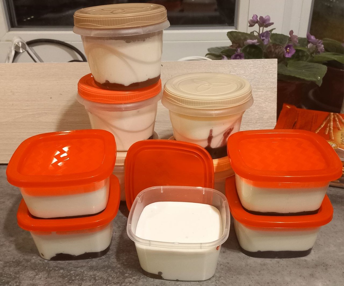 5. На дно формочек положить ~1 см джема/желе/карамели. Залить сверху творожной смесью. Убрать на ночь в холодильник.
