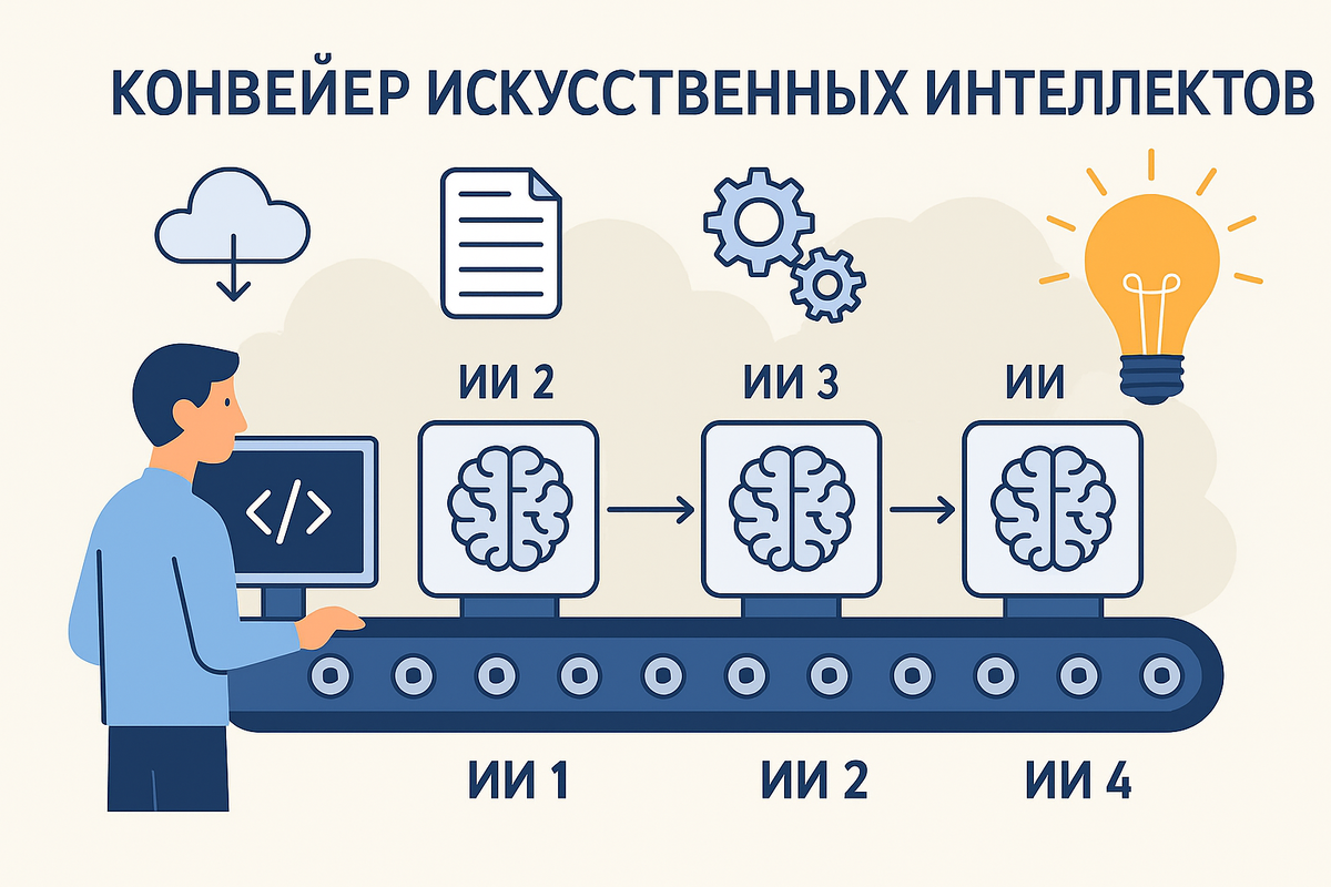 ИИ-конвейер (AI Pipeline) — это последовательная цепочка взаимодействующих искусственных интеллектов, объединённых в мульти-агентную систему нового поколения (Sequential Multi-Agent System).
