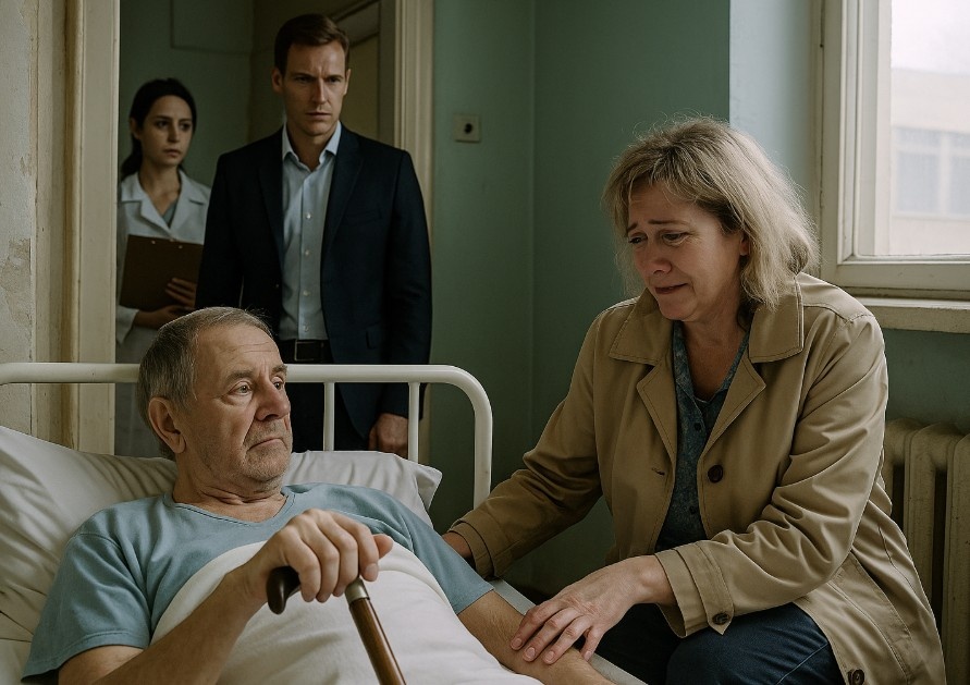 Она говорила громко, резко, будто заглушая собственную совесть. Её руки дрожали, но лицо оставалось холодным. На ней было дорогое платье и свежая укладка — слишком ухоженная, слишком нарядная для женщины, которая только что сказала, что бросает мужа после инсульта.