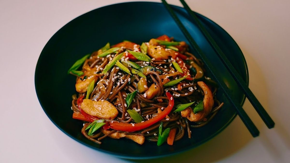 Иногда наступает тот вечер, когда привычная гречка с котлетой вдруг кажется скучной. Хочется чего-то с дымком, с соевым соусом, чтобы на кухне пахло рестораном, а не ужином после работы. Вот тогда я достаю сковороду вок и начинаю готовить лапшу удон с курицей и овощами — быстро, ароматно и с настроением. Лапша удон — это не что-то экзотическое. Это плотная, чуть тягучая пшеничная лапша, которая отлично впитывает соус и остаётся упругой. Главный секрет в том, чтобы не переварить: удон должен быть с характером. А дальше дело вкуса. В Японии его едят с бульоном, а у нас чаще жарят с курицей, овощами и соевым соусом. Так получается то самое блюдо, где простота встречается с восточной магией. Ингредиенты (на 2 порции): • Лапша удон 250 г • Куриное филе 300 г • Морковь 1 шт. • Болгарский перец 1 шт. • Лук 1 небольшая головка • Чеснок 2 зубчика • Соевый соус 3 ст. ложки • Кунжутное масло 1 ст. ложка (или обычное подсолнечное) • Сахар ½ ч. ложки (для баланса) • Кунжут, зелёный лук для подачи