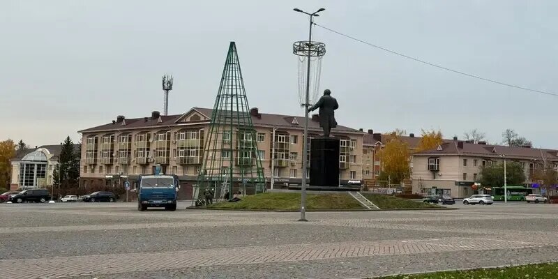 В Альметьевске стартовали подготовительные работы к празднованию Нового года на площади Ленина: специалисты начали собирать каркас главной праздничной ели.
