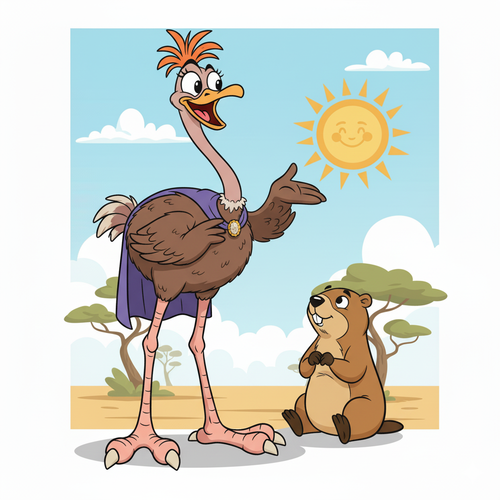 История про одного очень самоуверенного Страуса по имени Оскар. Оскар считал себя не просто птицей, а инженером-конструктором от природы. Он с гордостью показывал друзьям-животным свою новую нору. «Смотрите!– говорил он, размахивая крылом. – Глубина – два метра! Идеальный аварийный выход. Ни один хищник меня не достанет!» Его друг, сурок Станислав, опытный землекоп, беспокойно покрутил головой. «Оскар,друг, – сказал он, – нора-то хороша, а вот вход слишком широкий. Любой лев сунет туда лапу и как шар для боулинга тебя выкатит.» Но Оскар лишь фыркнул: «Ты в подземельях копаешься, а я – стратег!» Однажды, заслышав рычание льва, Оскар с криком «К бою!» лихо кувыркнулся в свою спасительную нору, как торпеда. Сидит, довольный, в темноте и думает: «Вот она, вершина эволюции!» Через секунду в отверстии появилась огромная львиная морда. Лев посмотрел на Оскара, потом на нору, усмехнулся и... просто лег, привалившись боком к входу, как пробкой. Оскар сидел в полной темноте. Снаружи доносился