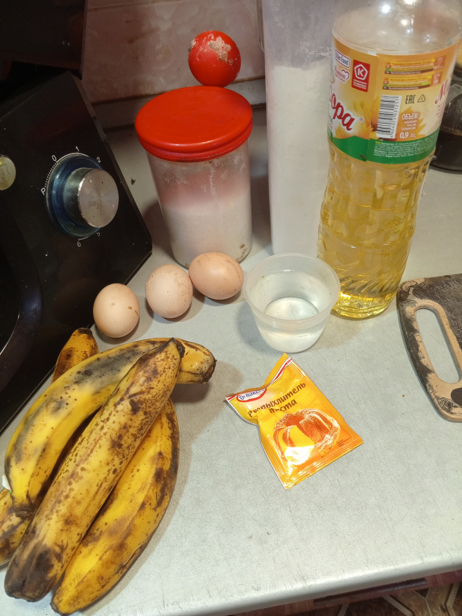 Всем привет мои дорогие подписчики и гости моего канала. Сегодня готовила банановый пирог и хочу поделиться с вами рецептом. Для тесто нам понадобится: 3 яйцо, сахар 100-150 грамм, если любите помладше можно положить больше, мука, разрыхлитель для теста, вода 50 мл, растительное масло 50 мл, конечно бананы у меня их было 4 шт. Яица сбиваем с сахаром, пока смесь не загустеет и не побелеет Добавляем воду и масло продолжая сбивать Добавляем муку и разрыхлитель. Пока тесто вмешивается режим бананы на кубики и добавляем их в тесто Опять все перемешиваем. Выкладываем тесто в форму предварительно смазав ее. Сверху выкладываем дольки банана и посыпаем корицей. И ставим в духовку печь при температуре 180-200 градусов примерно минут 40-45, все зависит от вашей духовке, проверяем на готовность, если к супу не прилипает тесто, значит пирог готов. Он получается очень воздушный, нежный и вкусный Одним кусочком не обойтись. Всем приятного чаепития со вкусняшками. Всем спасибо за внимание и подде