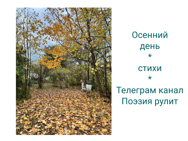 ОСЕННИЙ ДЕНЬ. Спешит ОСЕННИЙ ДЕНЬ погожий. Обходит луж стальную гладь. Ему вслед хлопает в ладоши Кленовых листьев ярких пядь. Нырнул игривый лучик солнца, Блестит серебряной струной. Зайчат купает и смеётся От брызг машины легковой. Вода умоет край бетонный. Сверкнёт невольной дрожью рябь. Примчится ветер, туч нагонит. Сотрёт весёлый дня мейкап. Тепло сбежит в уют под крыши. С деревьев снимется шатёр. Падёт листок последний рыжий На прелый выцветший ковёр. Зевнёт под белым пухом скука. Вздохнёт студёной новью грудь. Мороз щипнёт слегка за руку, Чтоб в круг к снежинкам подтолкнуть. Автор: Татьяна Ткаченко Профиль: (Принадлежит кампании Мета, признанной экстремистской и запрещена на территории РФ)