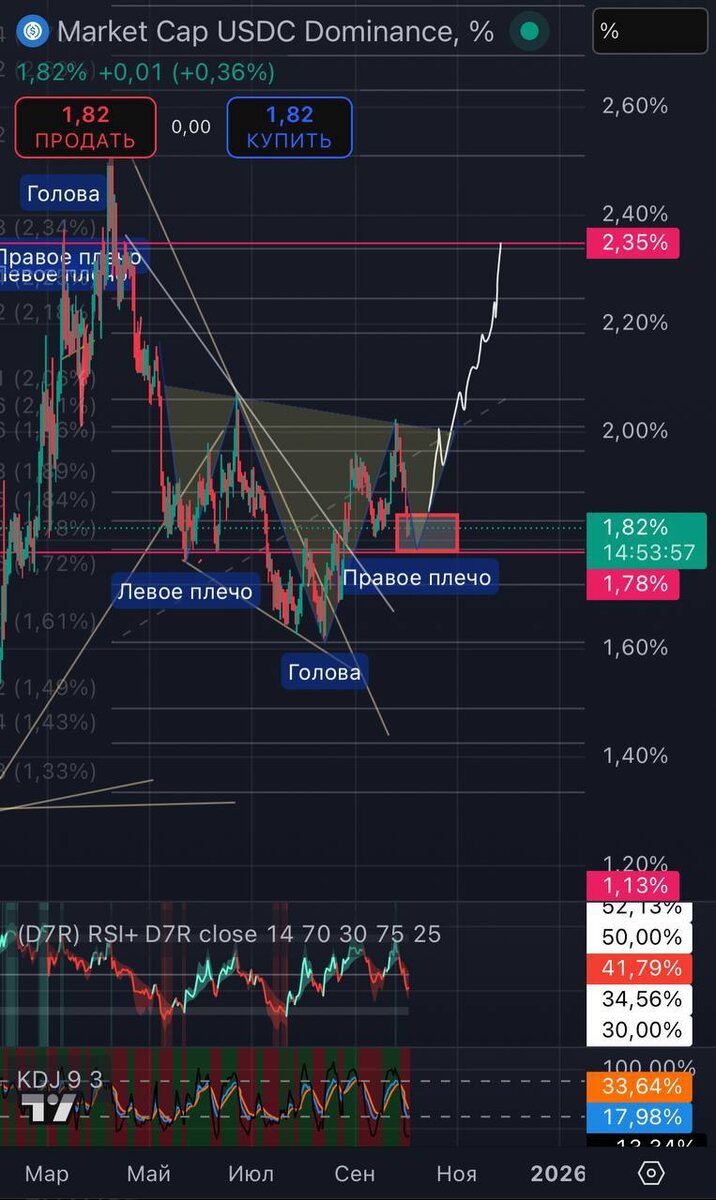 В ответ на пост Пост для тех кто утверждал что прошедшее падение нельзя было спрогнозировать, вот явный пример, прогноза. В канале усвоили инфу 25% и тем самым заработали деньги, хотя предупреждали всех. Ровно за неделю курсанули братишек и сестренок. #usdc.d обязательно добавите себе в TradingView 🐋 BLOFIN | ⛰ MEXC | 💰 LFT | 🔀 BingX | 💵 Отзывы