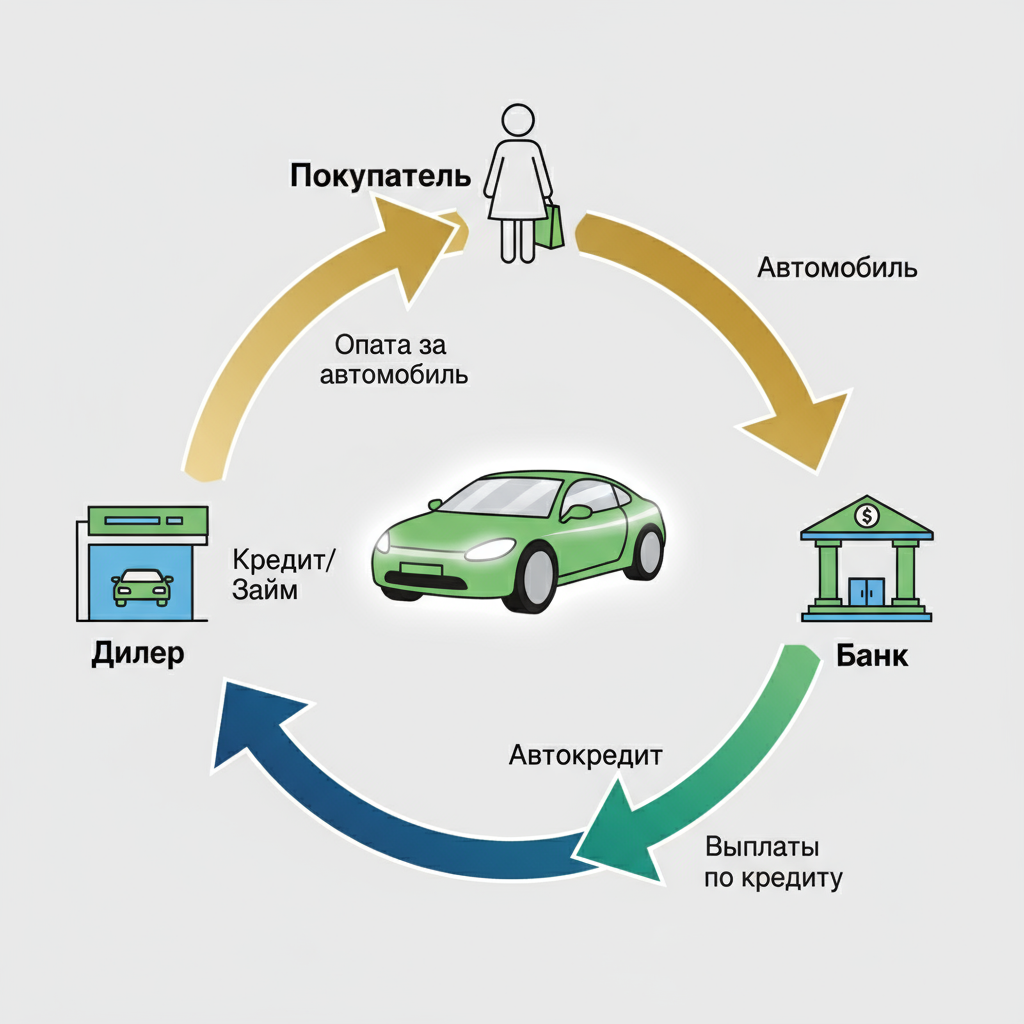 - За кулисами дилер переводит банку крупную сумму (ту самую "скидку"), чтобы банк ничего не потерял.